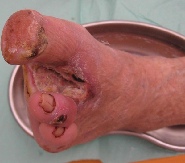 Extensive gangrene involving forefoot and /or midfoot; full thickness