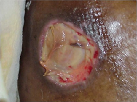 Fig. 11. Clean, but non-granulating, dusky, pale wound |