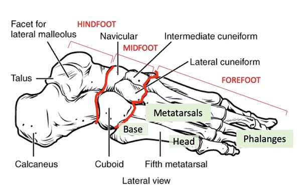 - Another less common but more severe form of foot deformity is Charcot foot (Figure 2), where the foot is undergoing subluxation and fracturing. This typically happens in the midfoot, where a breakdown of the arch is known as a “rocker-bottom” deformity.