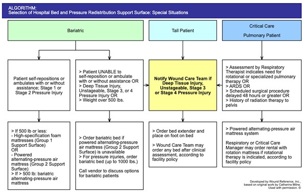 Algorithms 1A and 1B. Selection of Hospital Bed and Pressure Redistribution Support Surface